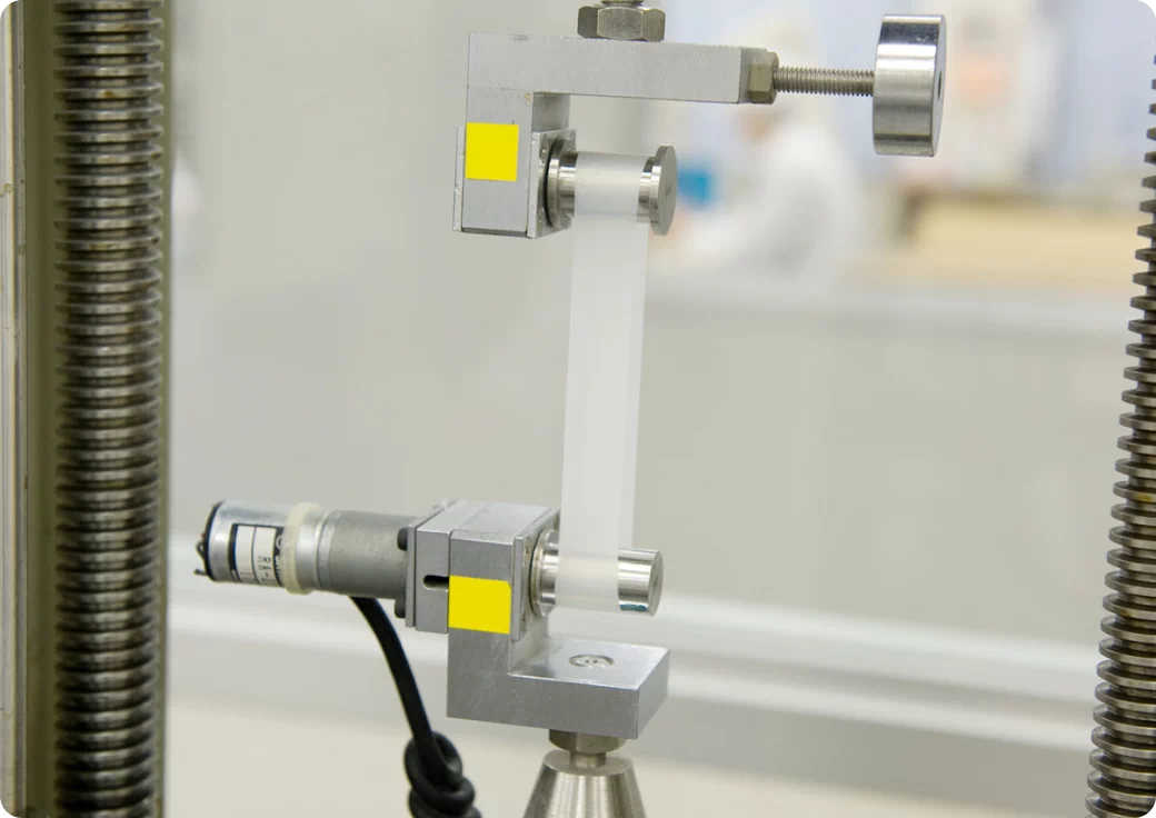 コンドームを輪切りにして、その両端を引っ張り、破断した時の伸びとどれだけの力に耐えたかを計測するものです。
