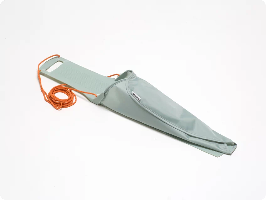 上半身の機能が不自由な方が、他人の手を借りることなくトイレの始末ができる自助具です。