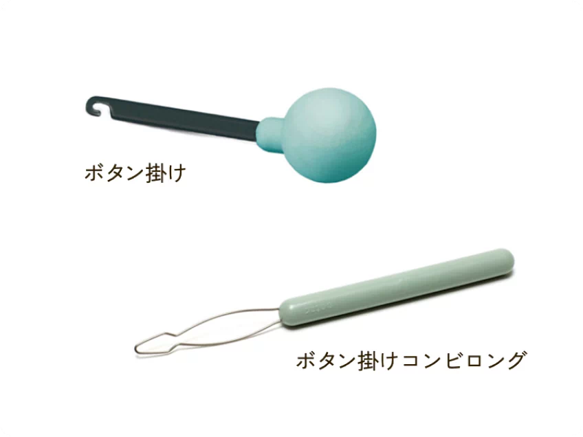 指先の運動機能が衰えた方が、ボタンを掛けるのに便利です。コンビロングはボタンの穴が小さい服にご使用できます。