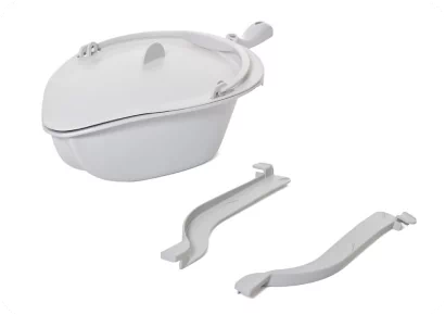 入浴中に排便があっても安心な洋式トイレとシャワーチェアの兼用タイプです。用途に合わせて様々なオプションパーツを利用すると、より便利にご使用いただけます。小型、軽量タイプ。