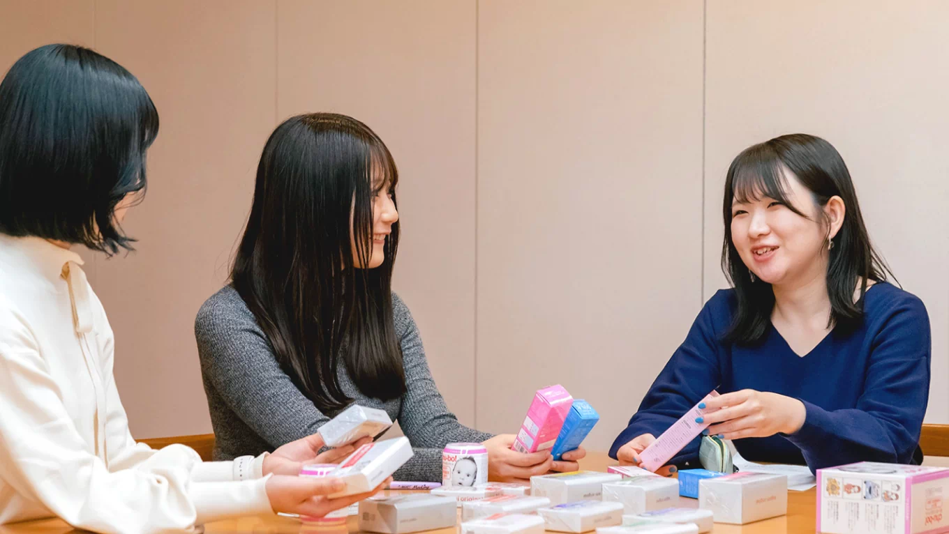 特に「形になること」「目で見えること」にやりがいを感じます。自分が意見を出したり、デザインを担当したPOPや什器などの販促物が店頭に置かれる、営業活動で使っていただけるなど、形になって届くことがやりがいです。最近ですと、営業の同期たちと意見を出し合って制作した潤滑ゼリーの専用什器が実際に店頭に置かれたことに特に達成感を感じました。Xをはじめとした各種SNSの運用も、反応が数字で見えるので、良かったところと反省点を確認しやすく、次に活かせることがやる気に繋がります。