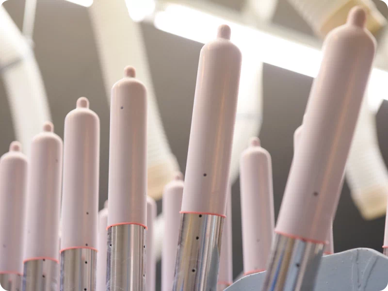 To check for microscopic holes called “pinholes,” every single condom undergoes a 100% inspection.
