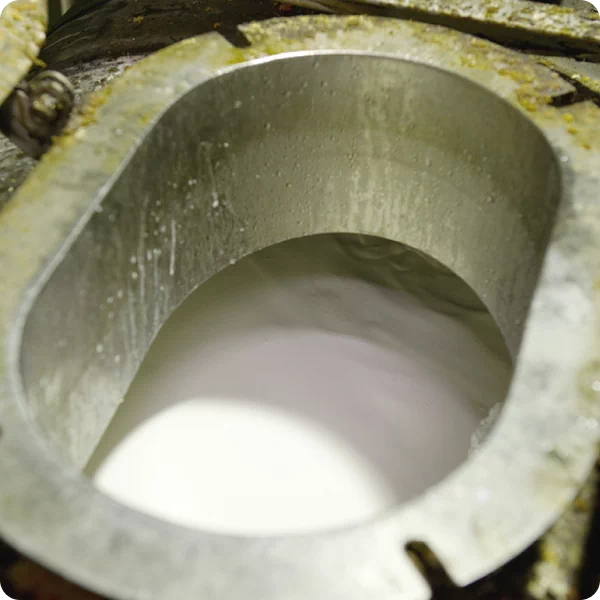 先ほど配合した液状の天然ゴムラテックスを大きなプールに入れて、その中にコンドームの形をしたガラスの型を浸します。