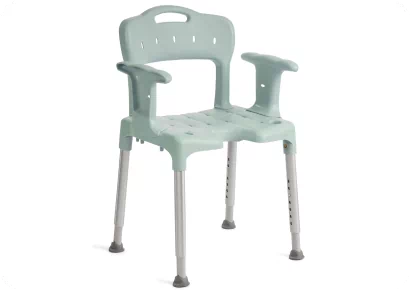 入浴中に排便があっても安心な洋式トイレとシャワーチェアの兼用タイプです。用途に合わせて様々なオプションパーツを利用すると、より便利にご使用いただけます。小型、軽量タイプ。