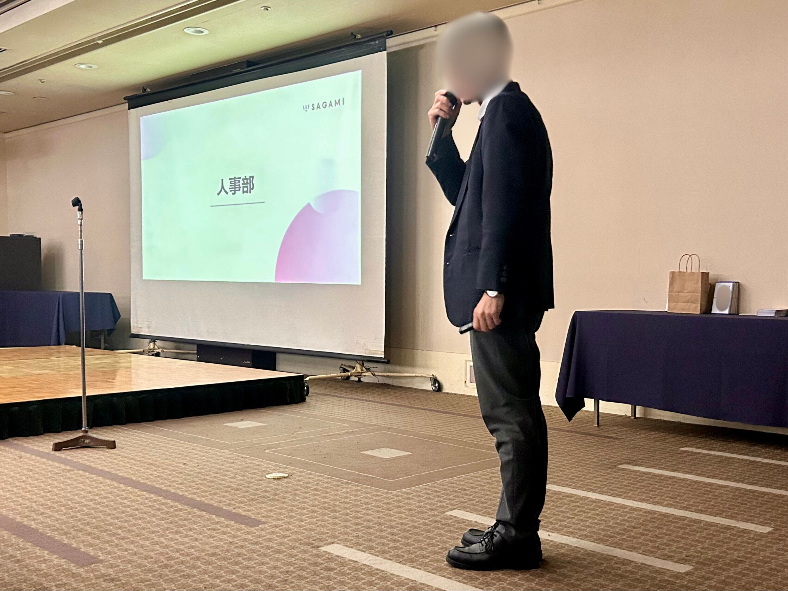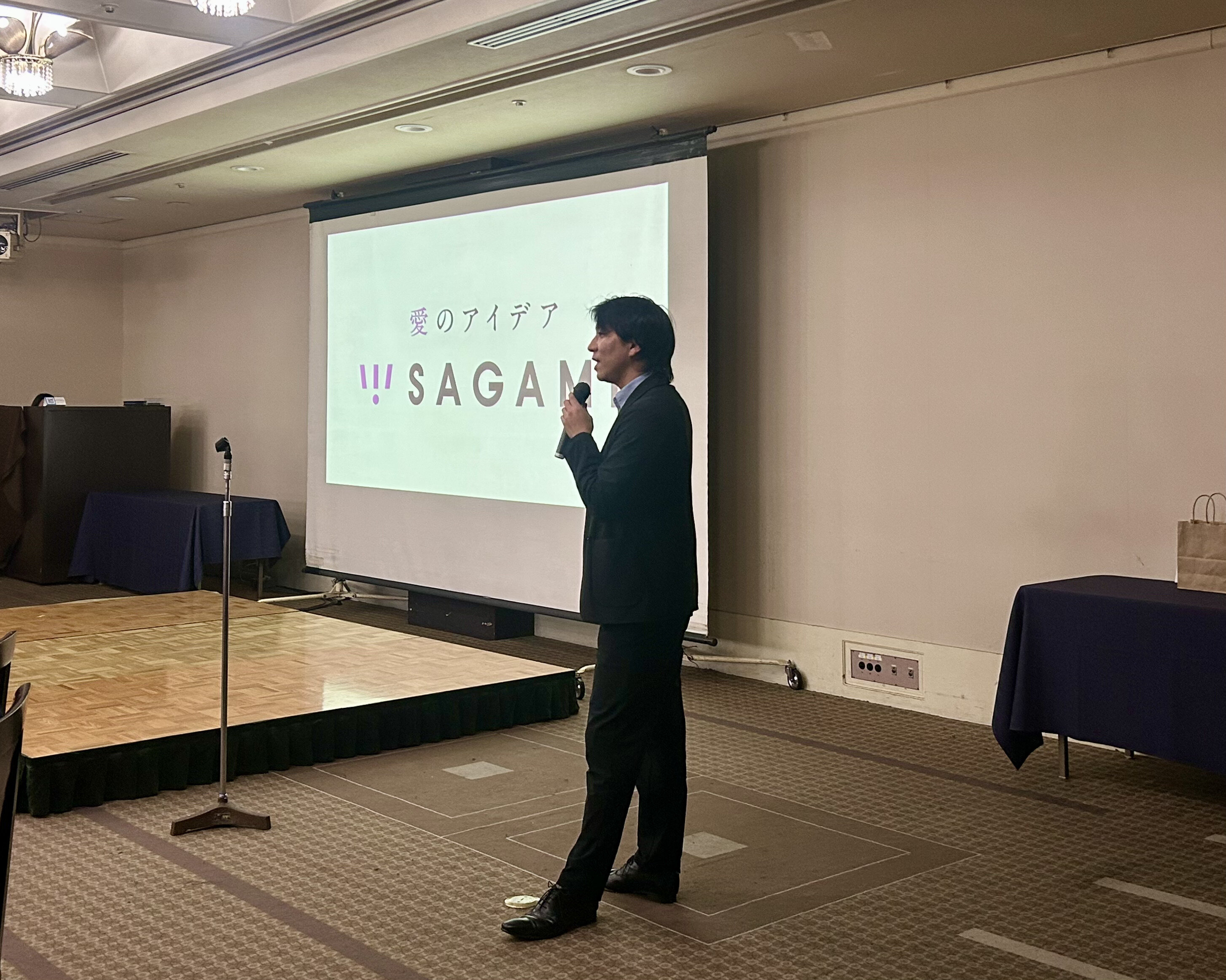 前回開催の2016年から今年2025年までの国内外の多種多様なニュースやトピックスの振り返りから始まった発表は、「”守りのサガミ”を捨て、”戦うSAGAMI”」という方針が宣言され、最後は会場全体が新しいSAGAMIへの期待感に包まれるなか、社員への激励のメッセージで締めくくられました。