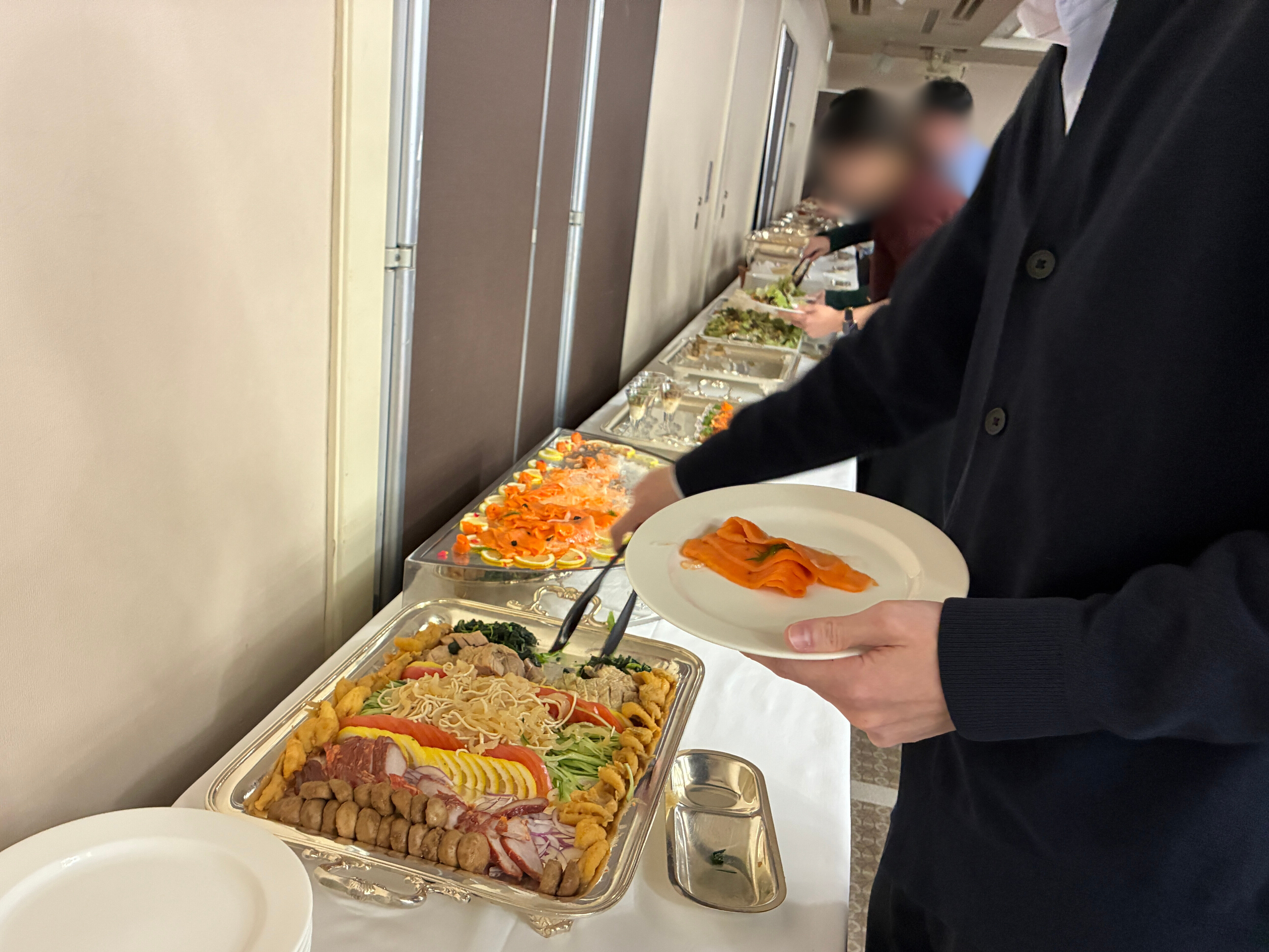 会場には洋食と中華の彩り豊かなビュッフェが並び、美味しい食事を囲みながら自然と会話の輪がそこらじゅうで広がっていました。