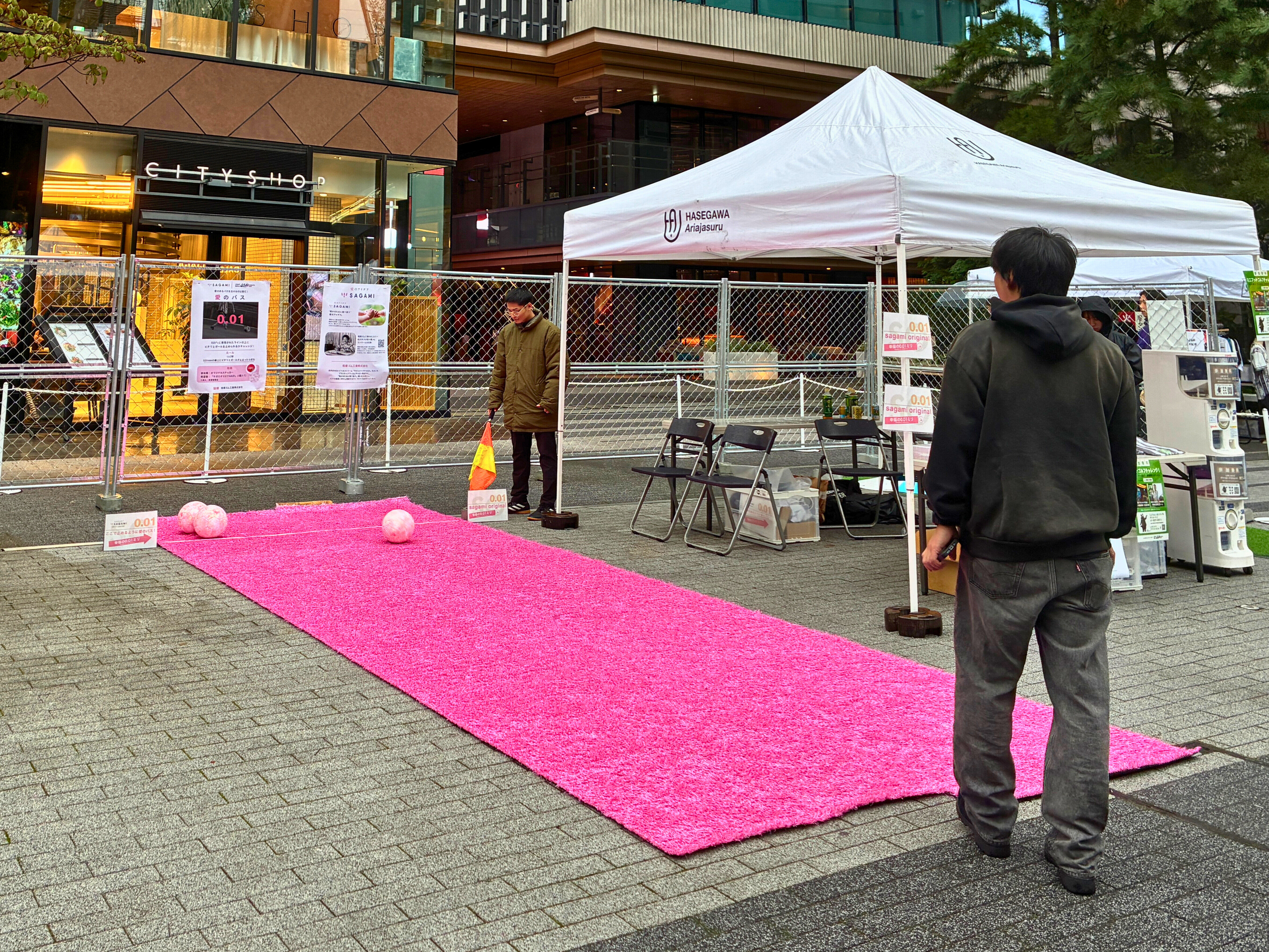 0.01ミリに表現されたラインの上に、蹴ったボールをピタリと止められるかチャレンジできるサッカーアトラクションで協賛いたしました。