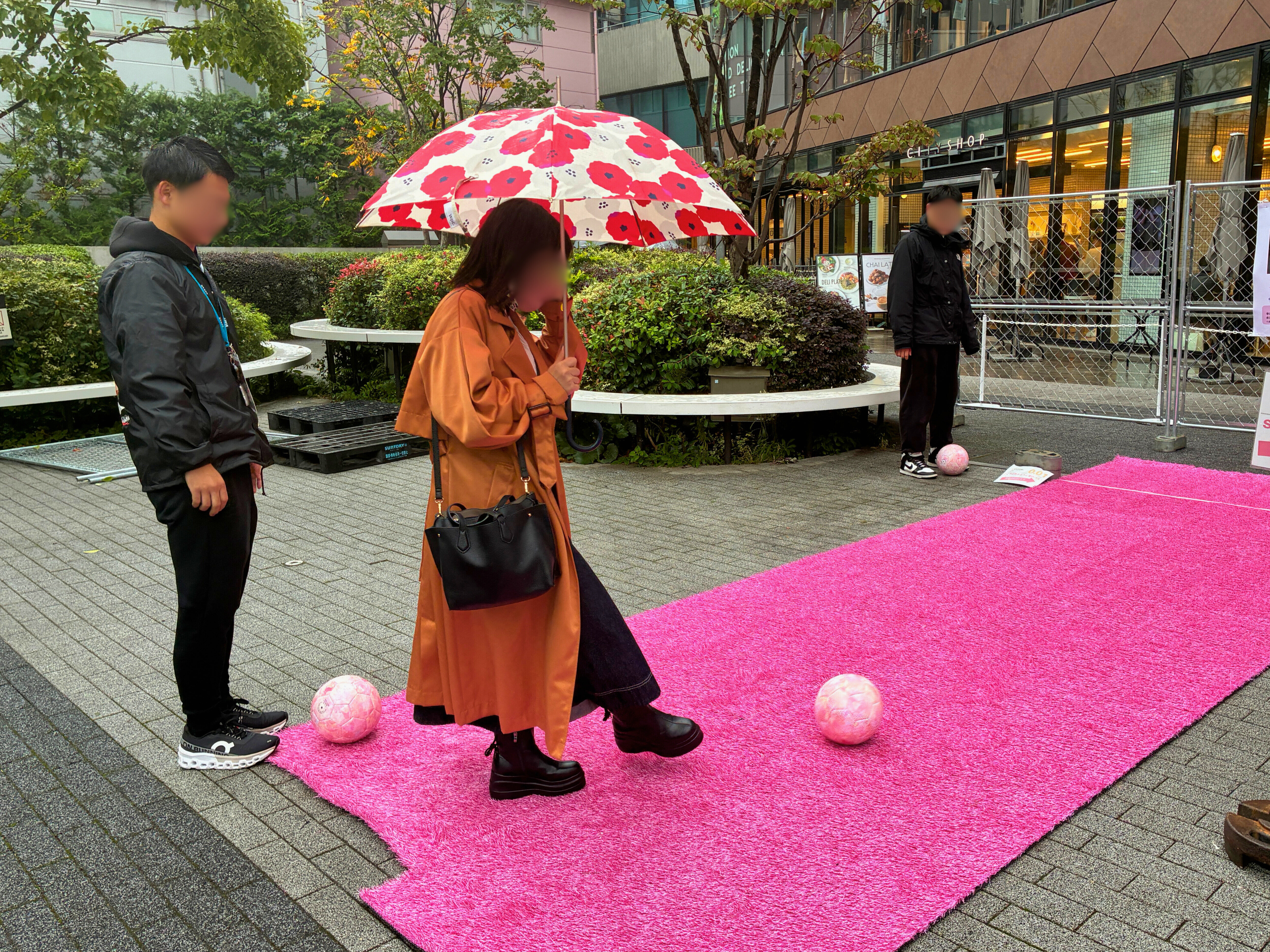 ボールを蹴るだけなので老若男女どなたでもできますが、かなり難しいゲームでした。