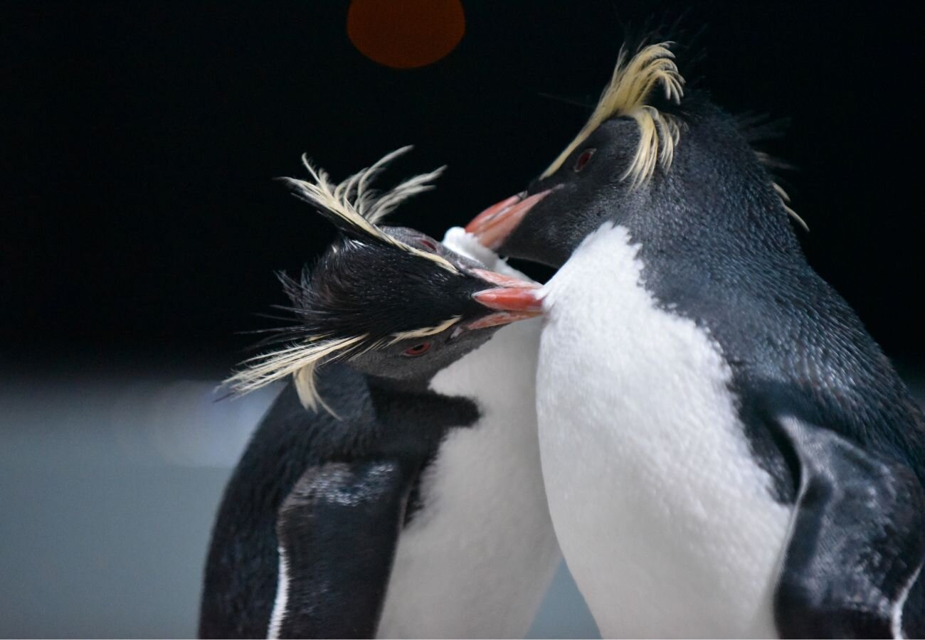 たとえば、AOAO SAPPOROで飼育されている キタイワトビペンギン の求愛行動には、羽づくろいや鳴き交わし、くちばしふりがあります。また、オスはメスに体を寄せつけフリッパーでパタパタすることでも愛を伝えます。